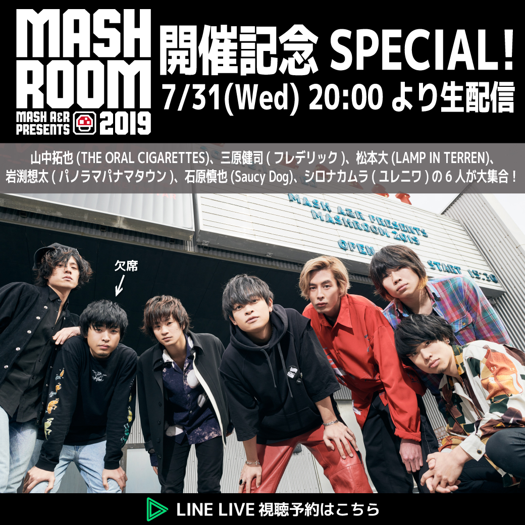 8月14日(水)新木場STUDIO COASTにて行われる「MASH A&R presents MASHROOM 2019」の開催を記念し、スペシャアプリ、LINE LIVEにて事前特別番組の生配信が決定した。
