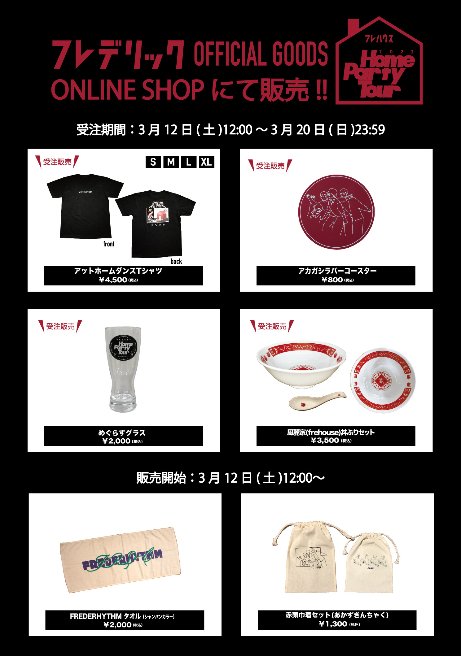 「Home Party Tour 2022」初日、3月12日(土)12:00〜ONLINE SHOPにてグッズ販売を開始致します。